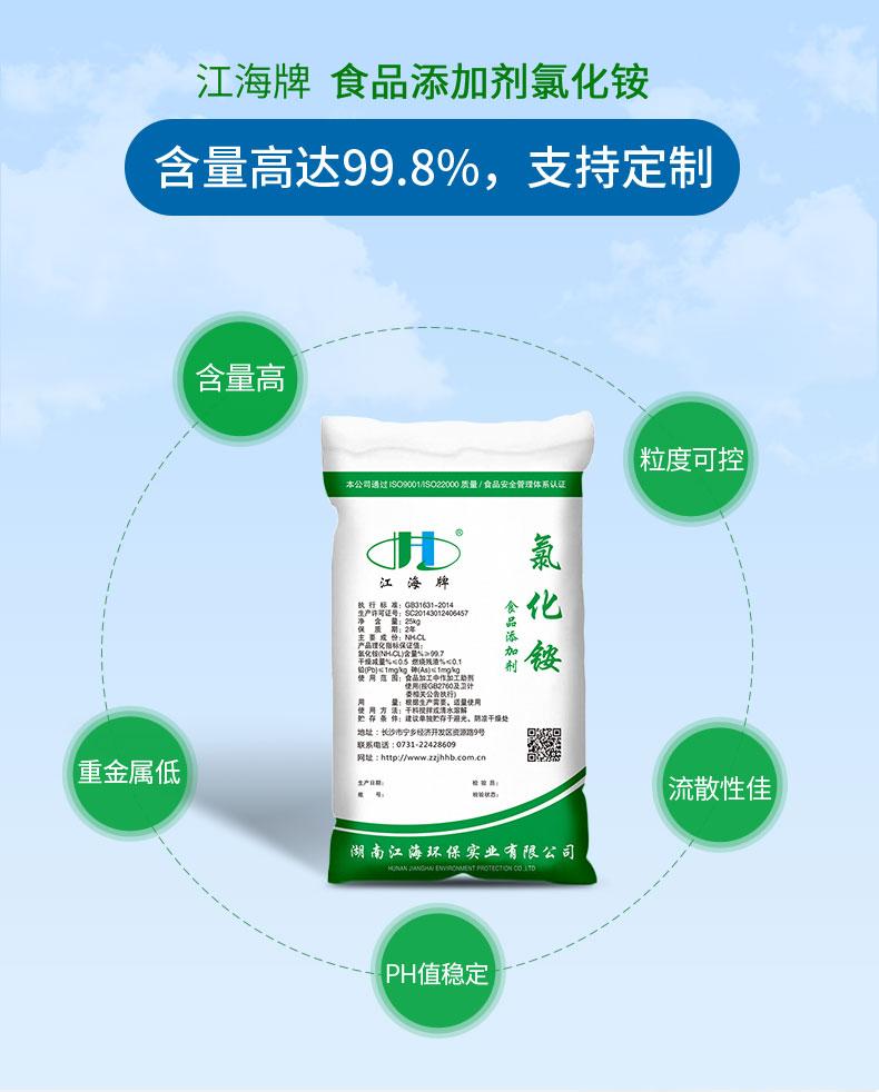 江海公司并未就此止步,公司能提供良好的技術支持和同廣大客戶朋友一道在食品級氯化銨的深度應用、產品開發深入合作,共同提高產品的核心競爭力,為客戶創造 價值。